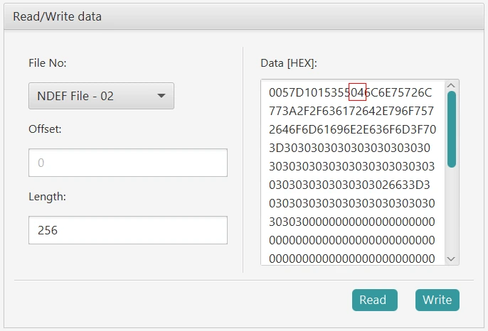NDEF Payload(HEX) Infois similar to that shown